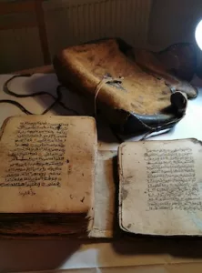 Die bisherige Geschichte: Der Entrümpler eines Hauses in Nassau wollte den Dachbodenfund nicht wegwerfen. Er nahm es mit nach Hause. Das ist 30 Jahre her. Nachforschungen ergaben: bei der Schrift handelt es sich um Arabisch, die Blätter sind mit dem Text des Koran beschrieben worden. Die Schriftart und Machart verraten die Herkunft: Kanem-Bornu, ein ehemaliges Großreich auf dem Gebiet des heutigen Nigeria und Niger.